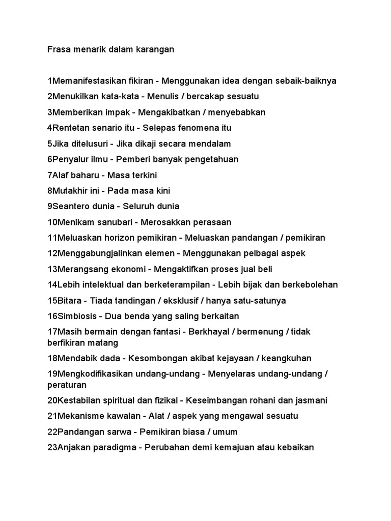 Frasa Menarik Yang Boleh Digunakan Untuk Menulis Karangan Pdf
