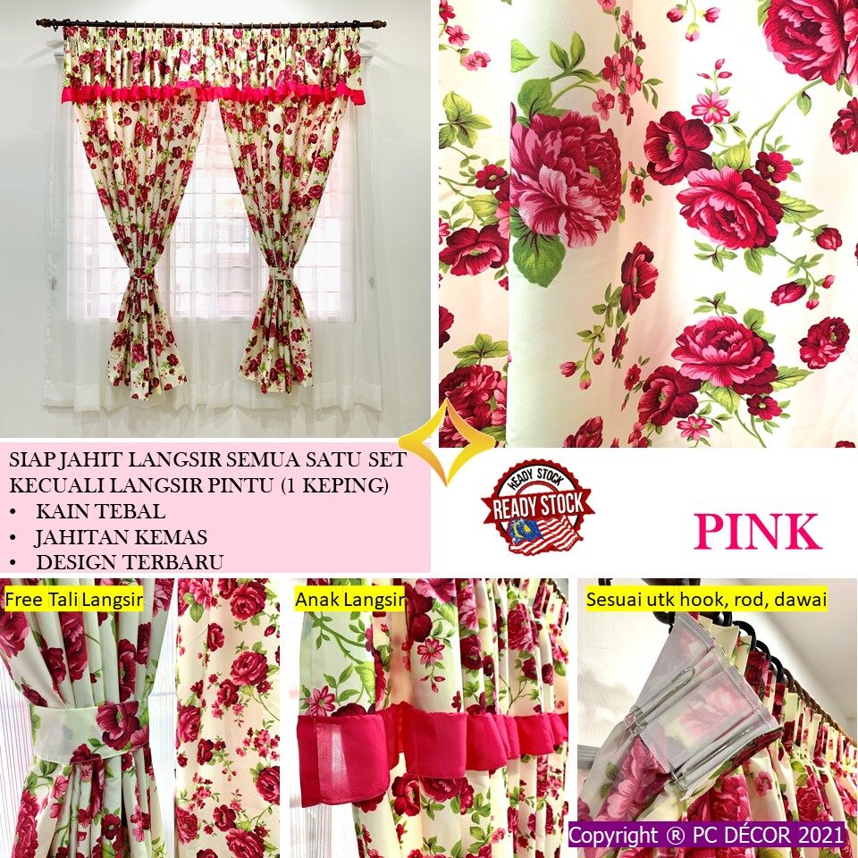 Langsir English Cotton Readymade Stock High Quality Siap Jahit Pk Curtains Lazada